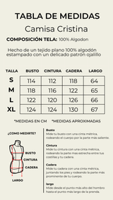 La camisa Cristina Sugar es la combinación perfecta de elegancia y comodidad. Hecho de un tejido plano 100% algodón estampado con un delicado patrón ojalillo, esta camisa se destaca por su estilo sofisticado. Con su cuello y botones, te aseguramos una apariencia exclusiva y distinguida. Disfruta de la suavidad del algodón y el lujo de su diseño en esta prenda única.